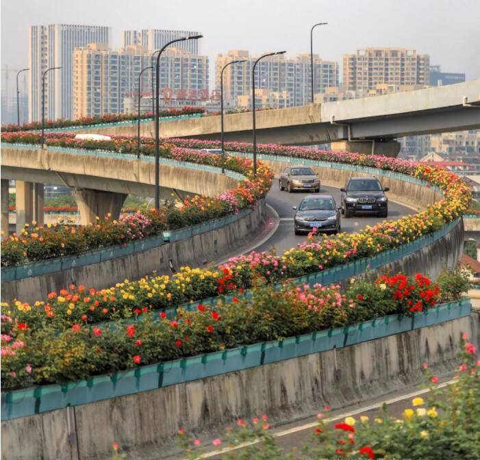 月季花在高架、高速路的景观提升中被大量运用,无论是在隔离带还是在外围护栏的建设中,月季花都极为合适。不同品种月季花穿插搭配,城市的道路不是钢筋混凝土的单一物,而变身花海,景观大提升,也让驾驶员高速行车身心愉悦,缓解身体疲劳及视觉疲劳。